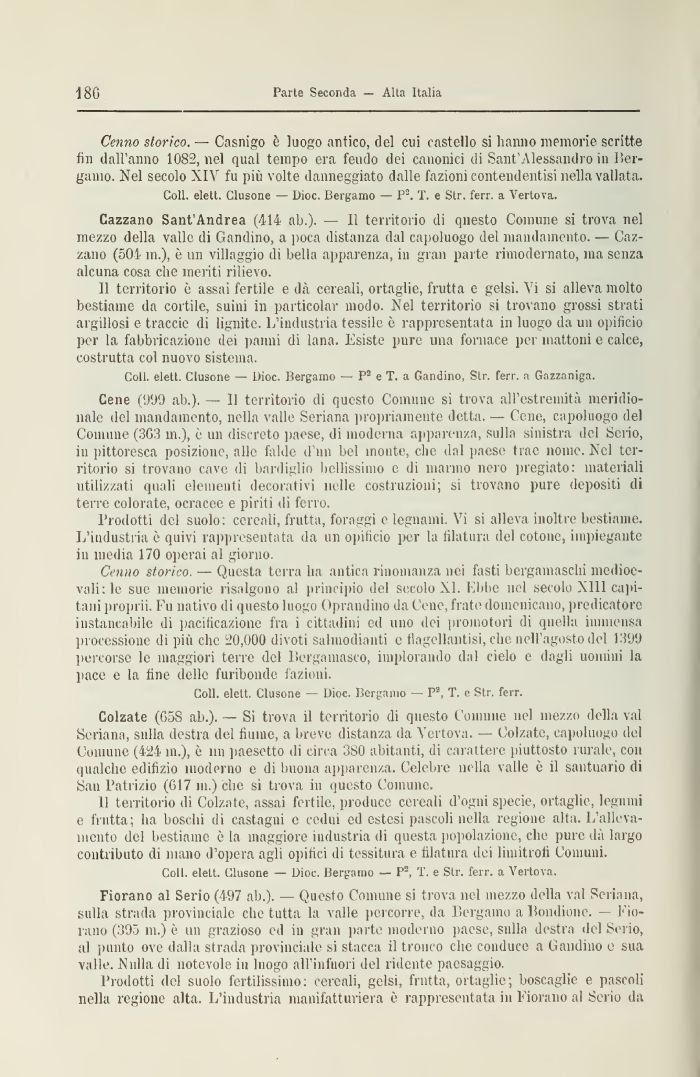 Coli, elett. Clusone — Dioc, Bergamo — P3 e T. a Gandino, Str. ferr. a Gazzaniga.