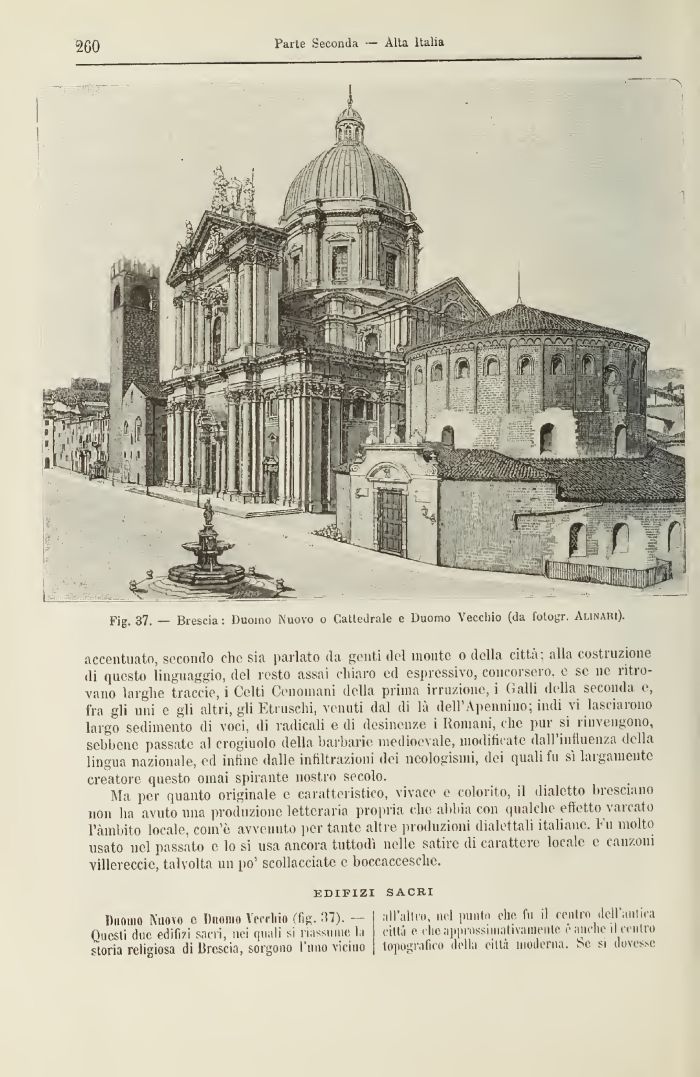 Duomo Nuovo c Duomo Vecchio (fig. .17). — Questi due edifici sacri, nei quali si riassume fi storia religiosa di Brescia, sorgono l'uno vicino