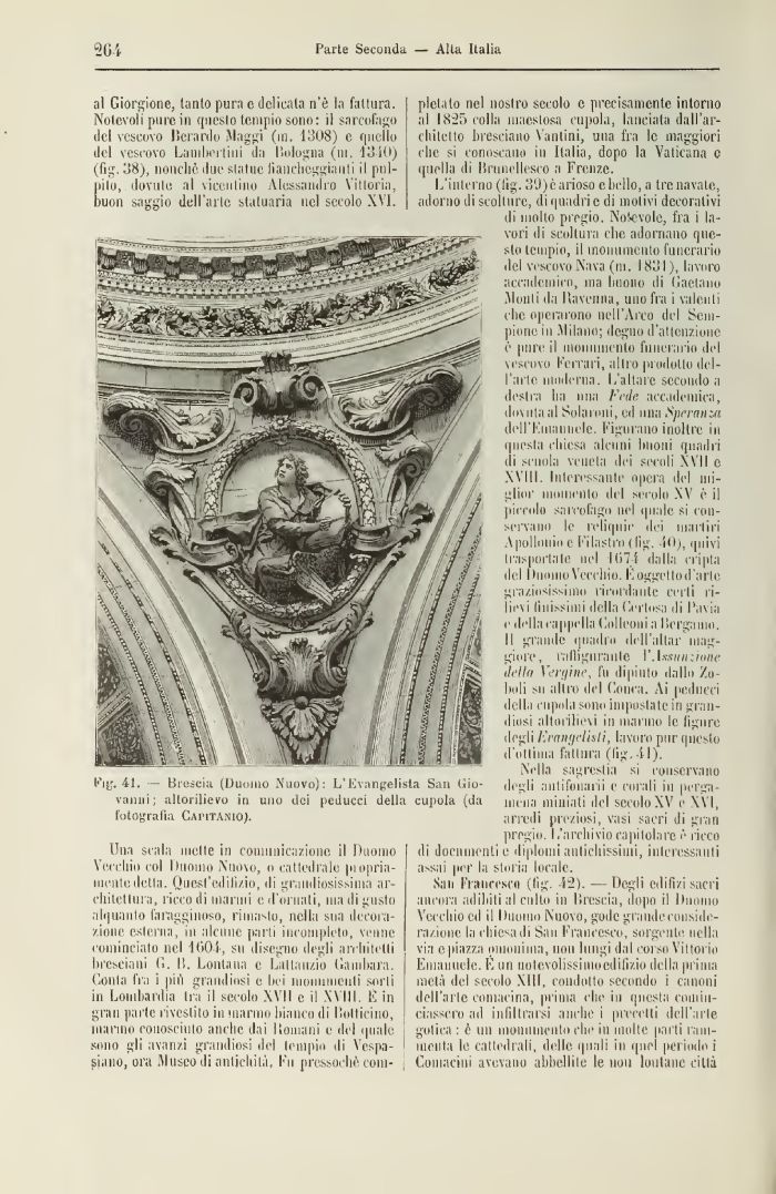 fijj. 41. — Brescia (DnoiUo Nuovo): L'Evangelista San Giovanili ; altorilievo in uno dei peducci della cupola (da fotografia Cahta.mo).