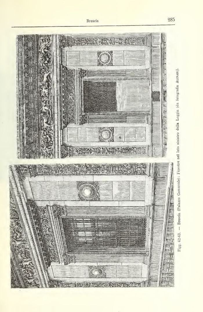 Figg. 62-63. — Brescia (Palazzo Comunale) : Finestre nel lato sinistro della Loggia (da fotografia Alinari).