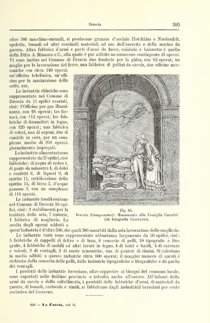trattura della seta, 7 tintorie, Brescia (Camposanto) : Monumento alla Famiglia Cuzzetti 1 fabbrica di maglierie. La (da fotografia Capitanio).