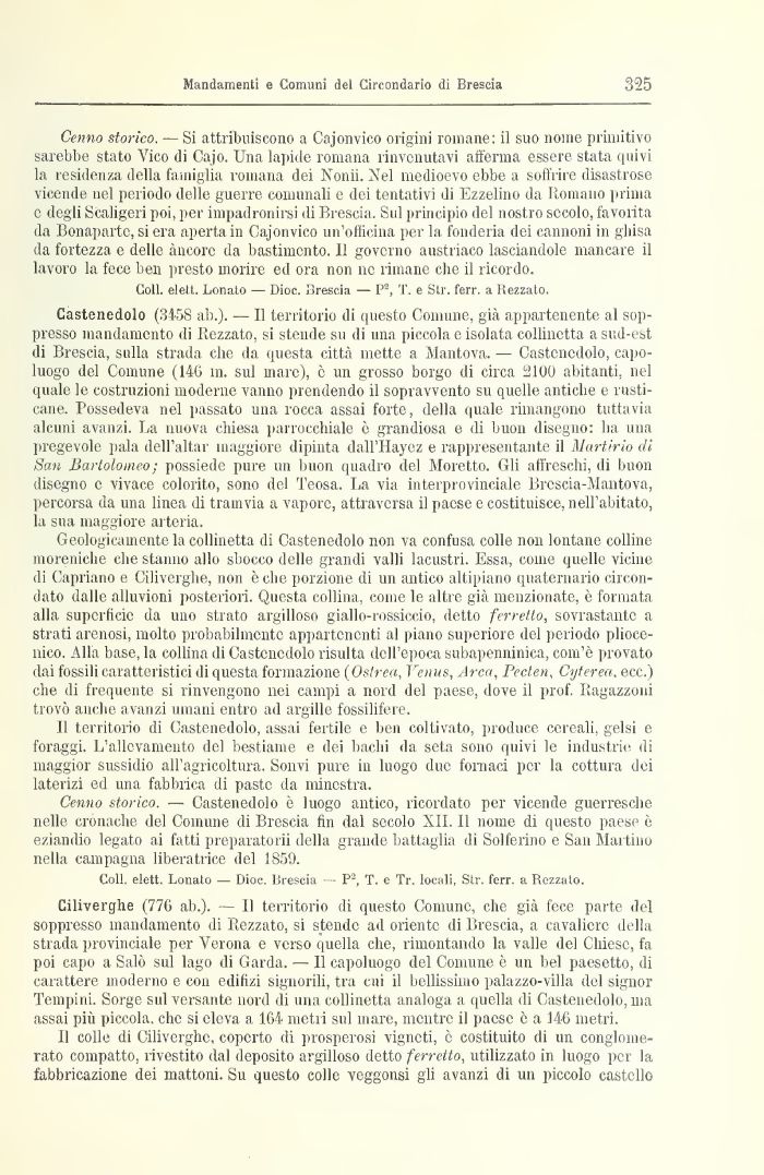 Il colle di Ciliverghe, coperto di prosperosi vigneti, è costituito di un conglomerato compatto, rivestito dal deposito argilloso detto ferretto, utilizzato in luogo per la fabbricazione dei mattoni. Su questo colle veggonsi gli avanzi di un piccolo castello