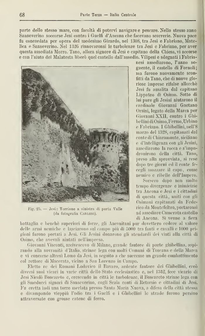 Fig. 2ó. — Jesi: Torrione a sinistra «li porta Valle (da fotografia Caiu.om).
