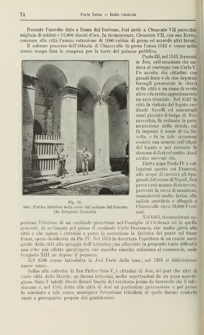 Paolo III, nel 1543, fennossi in Jesi, nell'occasione che andava al convegno con Carlo VI Fu accolto dai cittadini con grandi feste e da due deputati furongli presentate le chiavi della città e un ramo di verde ulivo e fu eretto appositamente un arco trionfale. Nel 151-2 la città fu visitata dal legato cardinale Savelli ed essendogli assai piaciuto il borgo di Ter-ravecchia, fu ordinata la pavimentazione della strada, cui fu imposto il nome di via Savella, e fu in tale occasione coniata una moneta coH'eiligie del legato e nel rovescio lo stemma di Jesi col motto: Acu ii eh'itas inerenti die.