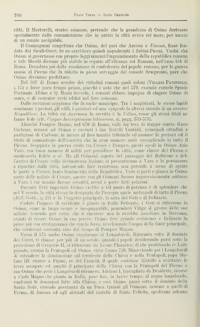 Din ante l'età imperiale Osimo crebbe a tal punto di potenza e di splendore che nel V secolo, la città stessa fu designata da Procopio quale metropoli di tutto il Piceno {lidi, Colh., n, -2:{) e fu l'oggetto principale, la mira dei Goti e di Belisario.