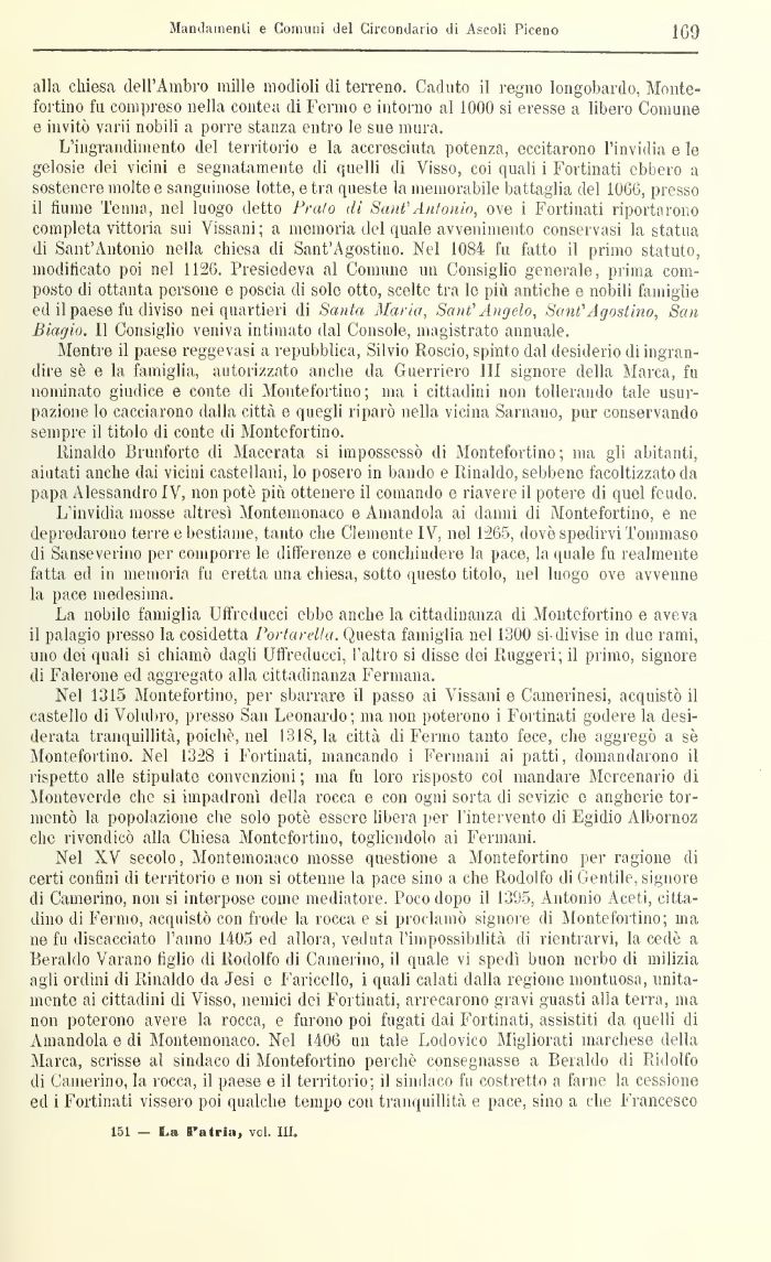 alla chiesa dell'Allibro mille modioli di terreno, Caduto il regno longobardo, Monte-fortino fu compreso nella contea di Fermo e intorno al 1000 si eresse a libero Comune e invitò varii nobili a porre stanza entro le sue mura.