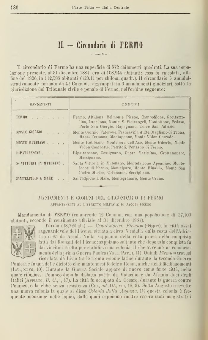 Mandamento di FERMO (comprende 12 Cornimi, con una popolazione di 37,100 abitanti, secondo il censimento ufficialo al 31 dicembre 1881).