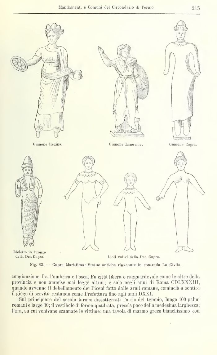 congiunzione fra l'u lubrica e l'osca. Fu città libera e ragguardevole come le altre della provincia e 11011 ammise mai legge altrui; e solo negli anni di Roma CDLXXXIII, quando avvenne il debellameuto dei l'iceni fatto dalle anni romane, cominciò a sentire il giogo di servitù restando come Prefettura fino agli anni DXXI.