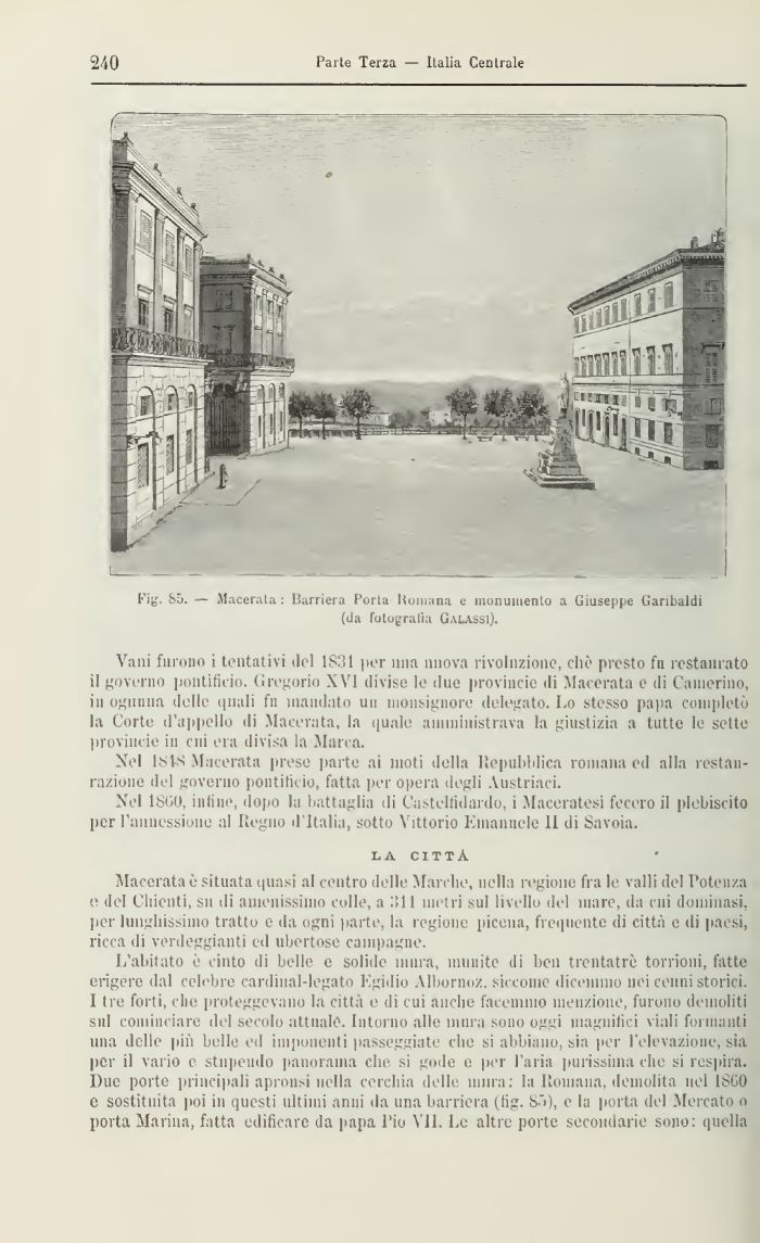 l'ig, 85. — Macerata : Barriera Porta Humana e monumento a Giuseppe Garibaldi