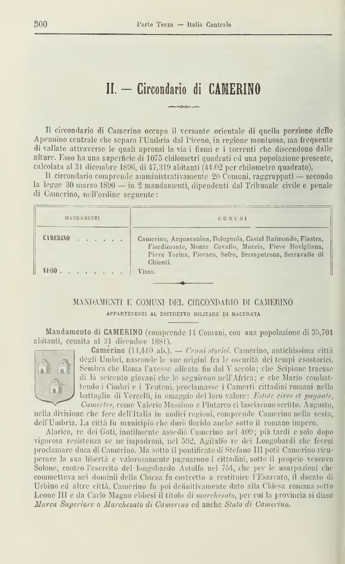 Mandamento di CAMERINO (comprende 11 Comuni, con una popolazione eli 35,701 abitanti, censita al 31 dicembre ISSI).