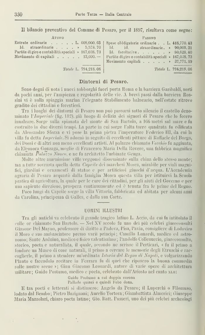 11 bilancio preventivo del Comune di Pesaro, per il 1897, risultava come segue: