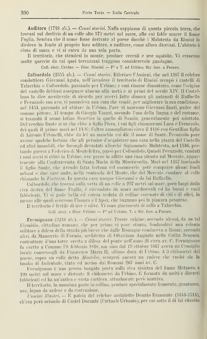 Coli, eiflt, e I)ioc. Urbino — I ad Cibino. T. e Str. ferr. a Pesaro.