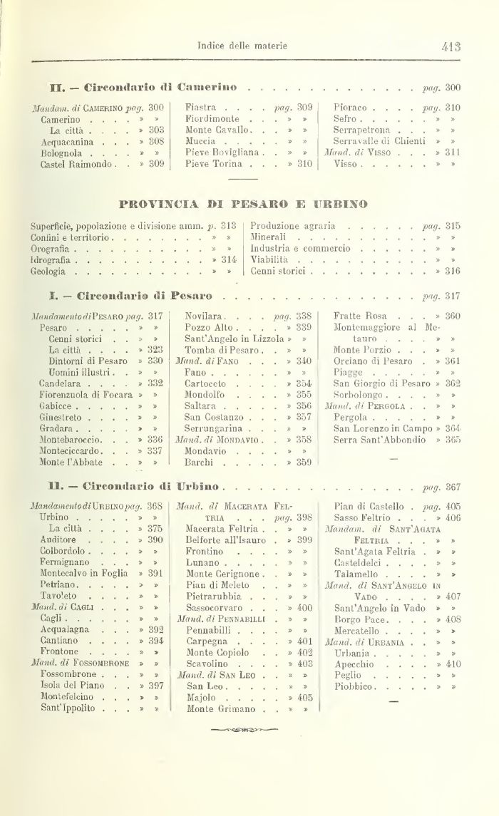Mandamento di Pesaro pag. 317 Novilara.... pag. 338 Fratte Rosa ...» 360