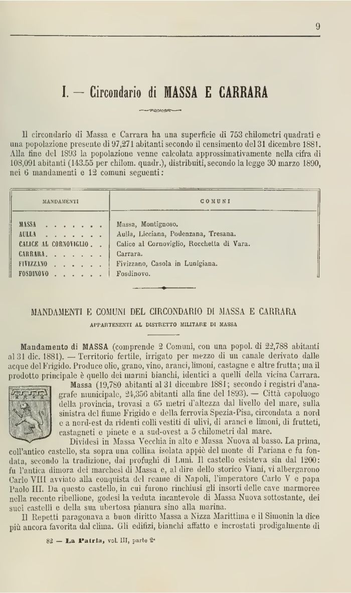 I. - Circondano di MASSA E CARRARA