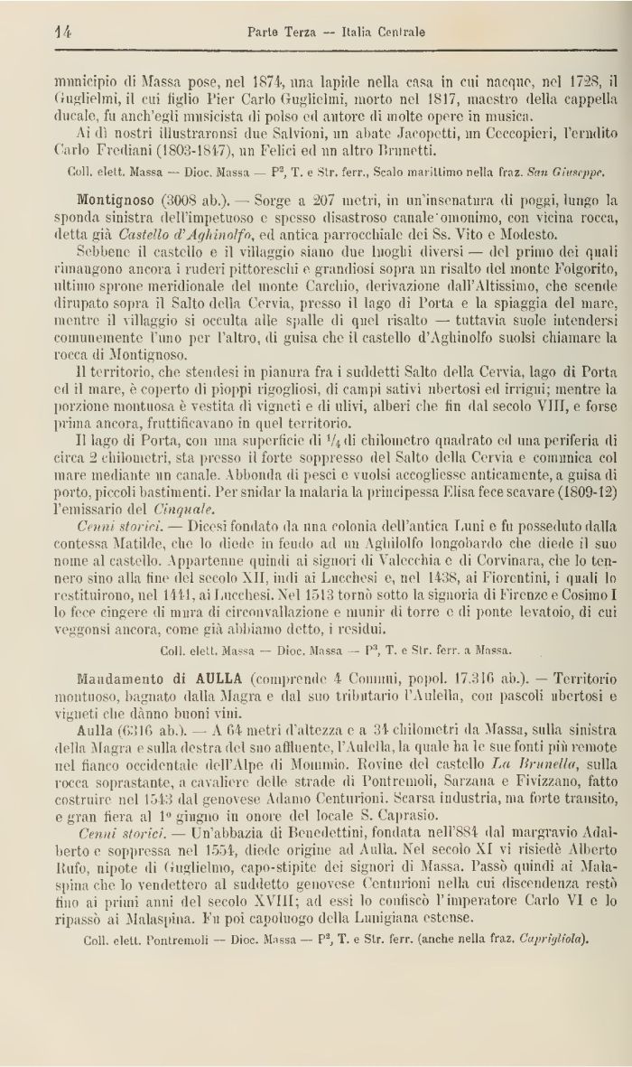 Coli, elett. Massa — Dioc. Mòssa — P», T. e Str. ferr. a Massa.