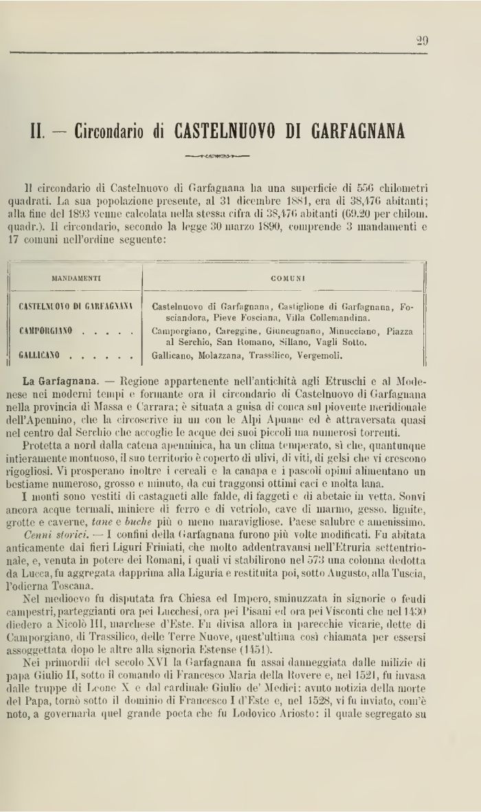 II. - Circondano di CASTELNUOVO DI GARFAGNANA