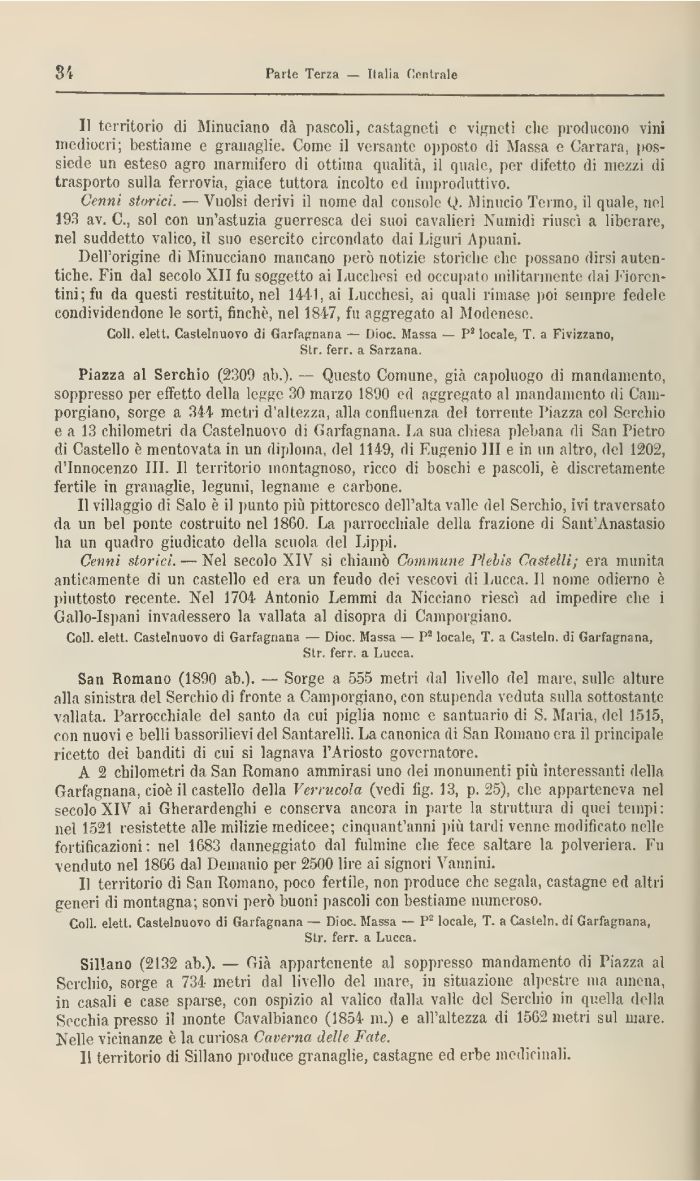 11 territorio (li Minuciann dà pascoli, castagneti e vigneti che producono vini mediocri; bestiame e granaglie. Come il versante opposto di Massa e Carrara, possiede un esteso agro marmifero di ottima qualità, il quale, per difetto di mezzi di trasporto sulla ferrovia, giace tuttora incolto ed improduttivo.