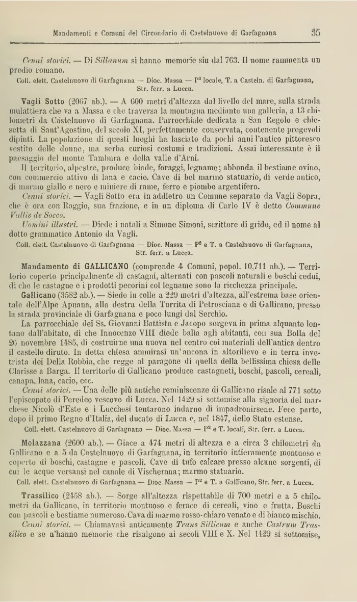 Coli, elett. Castelnuovo di Garfagnana — Dioc. Massa — l'2 e T. locali, Str. ferr. a Lucca.