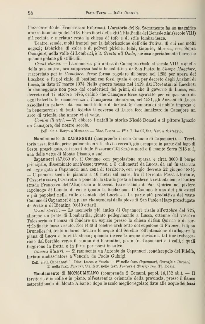 Uomini illustri. — Vi ebbero i natali lo storico Nicolò Donati e il pittore Ignazio da Camajore, del nostro secolo.