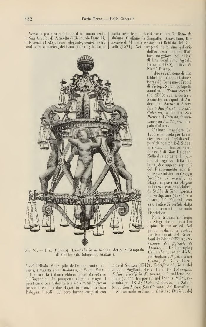 Nella tribuna nn fregio di Stagi divide molti bei dipinti in tre ordini. Nel primo ordine, a destra, quattro dipinti del Becca-fumi da Siena (1530); Punizione dei ftgli noli di % . .... i .. » t i .Ijwihc, di De Labrum»; ita, ita™»): Impaciano „ bronzo, detto la Lampada ^ ammali*Abele,