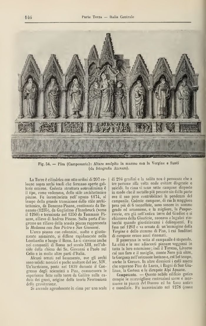 Fig, 54. — Pisa (Camposanto): Altare scolpito in marino con la Vergine e Santi (da fotografia Alinari).
