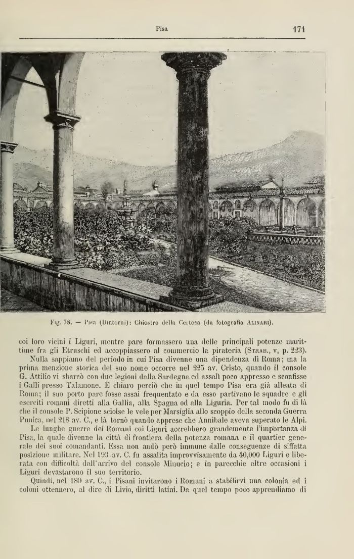 Fi£. 78. — Pisa (Dintorni): Chiostro della Certosa (ila fotografìa Alinari).