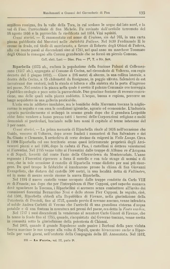 Coli, elett. Lari — Dioc. Pisa — P3, T. e Str. ferr.