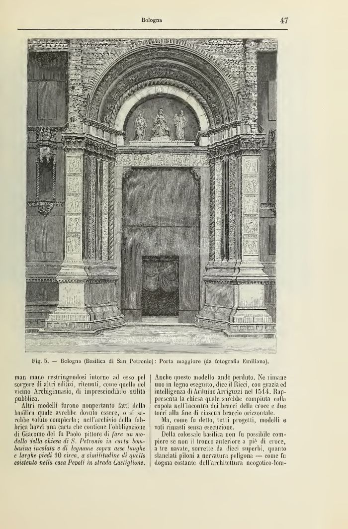 Fig. 5. — Bologna (Basilica di Sali Petronio) : Porta maggiore (da fotografia Emiliana).
