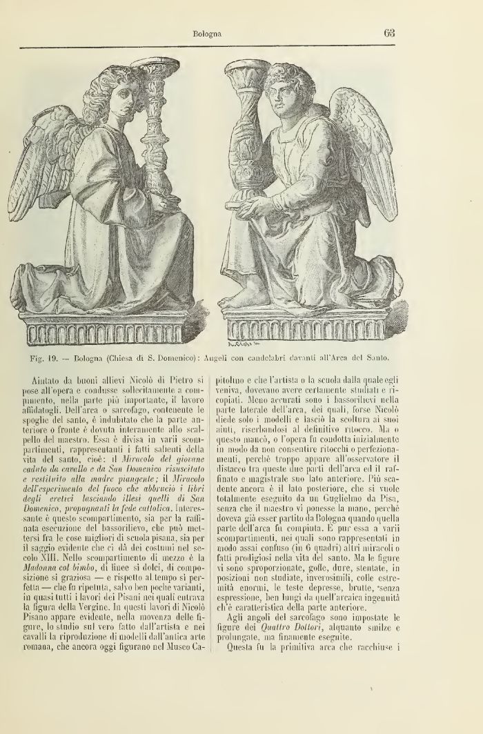 Fig, 19. — Bologna (Chiesa di S. Domenico): Angeli con candelabri davanti all'Arca del Santo.