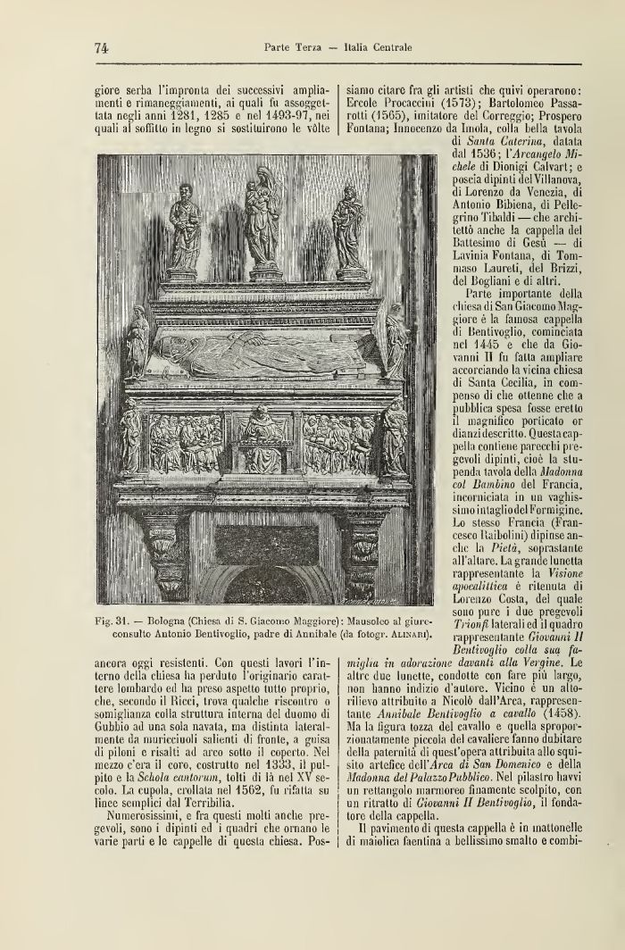 Fig. 31. — Bologna (Chiesa di S. Giacomo Maggiore): Mausoleo al giureconsulto Antonio Bentivoglio, padre di Annibale (da fotogr. Alijjari).