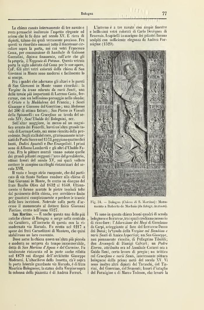 Fig. 34. — Bologna (Chiesa di S. Martino) : Monumento a Roberto de Morbais (da fotogr. Alinari).