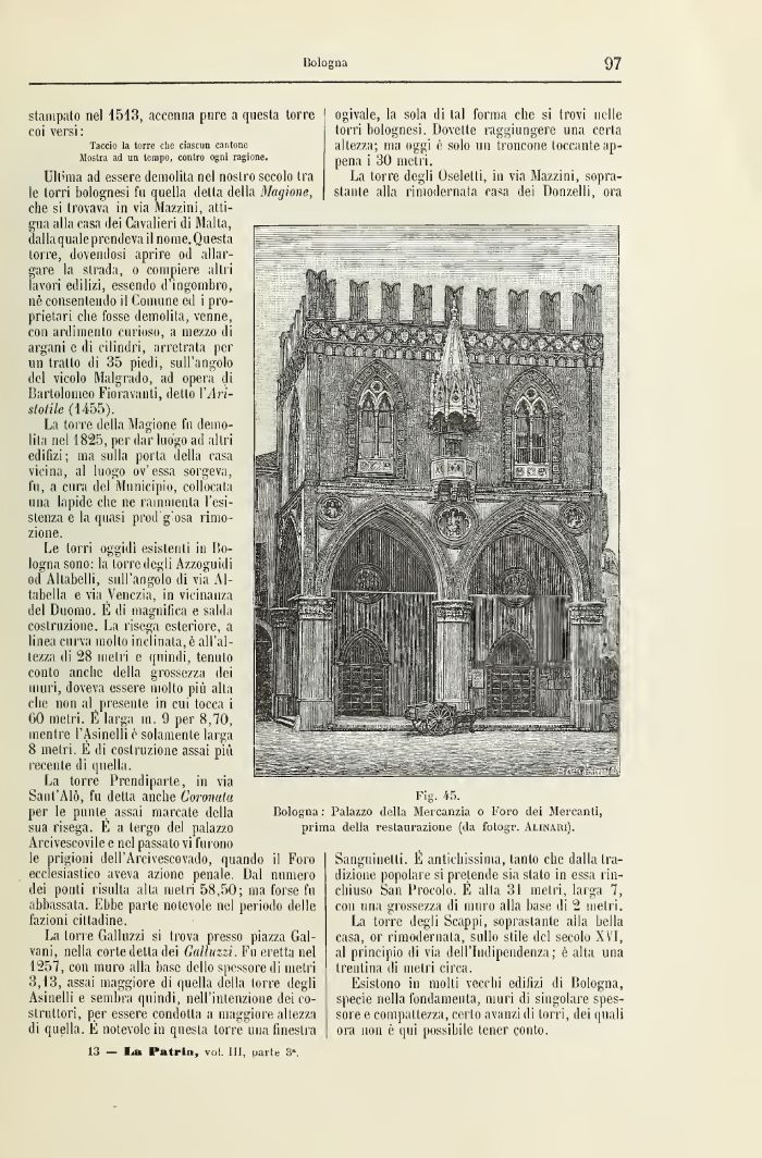 Bologna : Palazzo della Mercanzia o Foro dei Mercanti, prima della restaurazione (da fologr. Alinari).