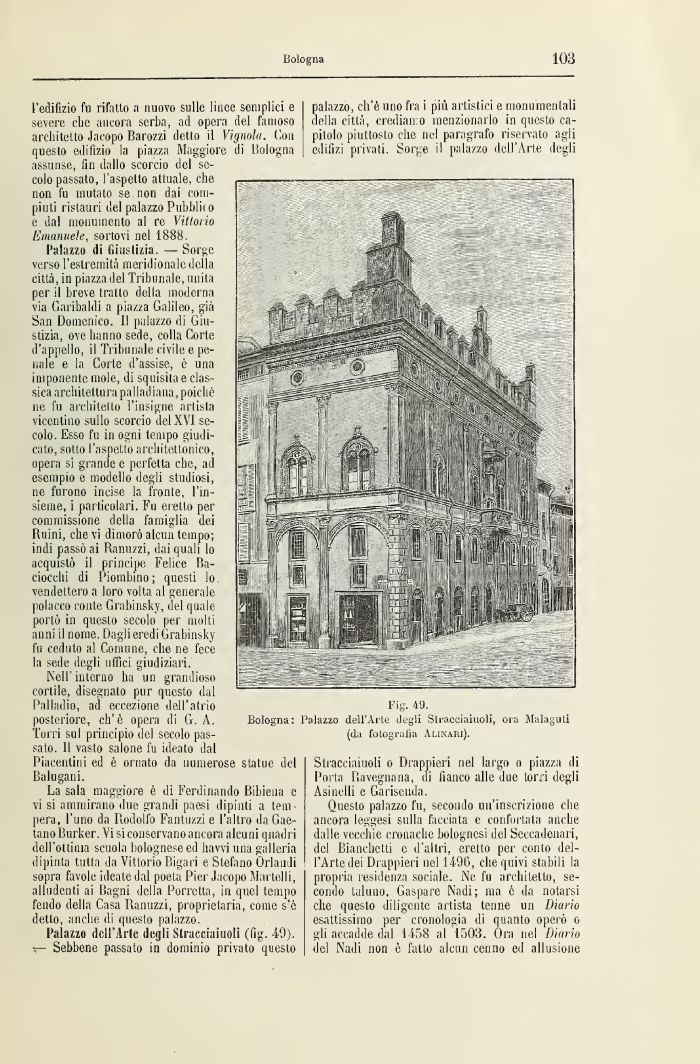Bologna: Palazzo dell'Arte degli Stracciamoli, ora Malagiati (da fotogratia Alinari).