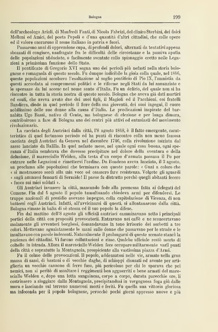 dell'archeologo Ai ioli, di Manfredi Fanti, di Nicola Fabrizi, del clinico Sterbini, dei fisici Melloni ed Amici, del poeta Pepoli e d'una quantità d'altri cittadini, che colle opere ed il valore onorarono il nome italiano 111 patria e fuori,