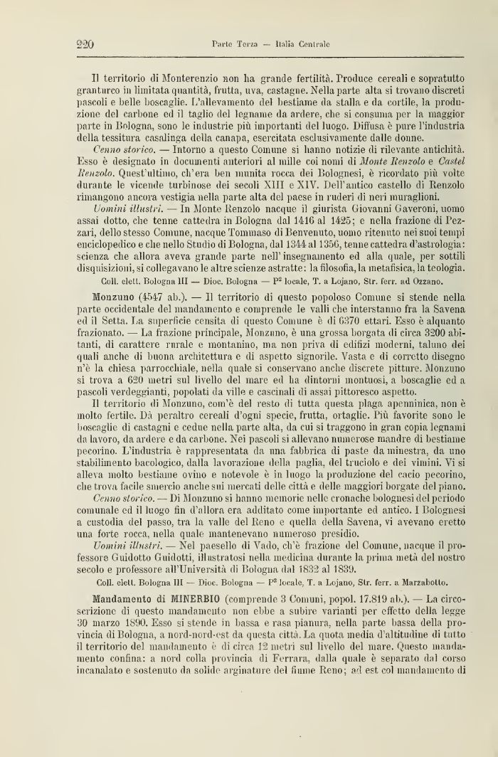 Uomini illustri. — In Monte Benzolo nacque il giurista Giovanni Gaveroni, uomo assai dotto, che tenne cattedra in Bologna dal 141G al 1425; e nella frazione di Pezzali, dello stesso Comune, nacque Tommaso di Benvenuto, uomo ritenuto nei suoi tempi enciclopedico e che nello Studio di Bologna, dal 1344 al 135G, tenne cattedra d'astrologia: scienza che allora aveva grande parte nell' insegnamento ed alla quale, per sottili disquisizioni, si collegavano le altre scienze astratte: la filosofia, la metafisica, la teologia.