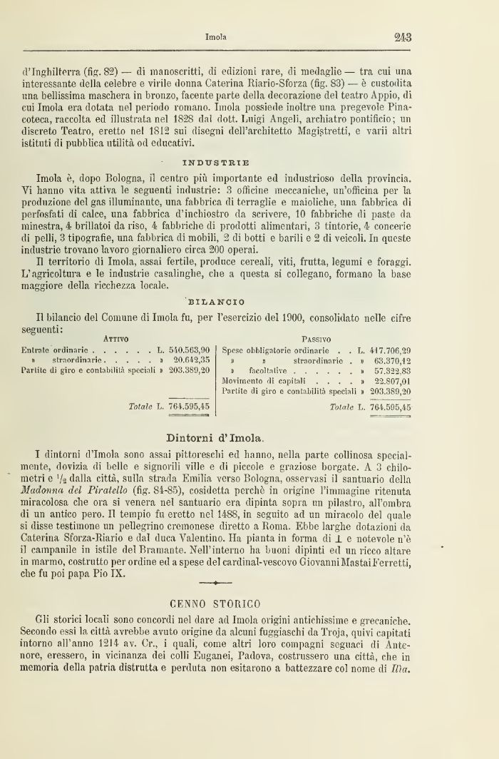 Il bilancio del Comune di Imola fu, per l'esercizio del 1900, consolidato nelle cifre seguenti: