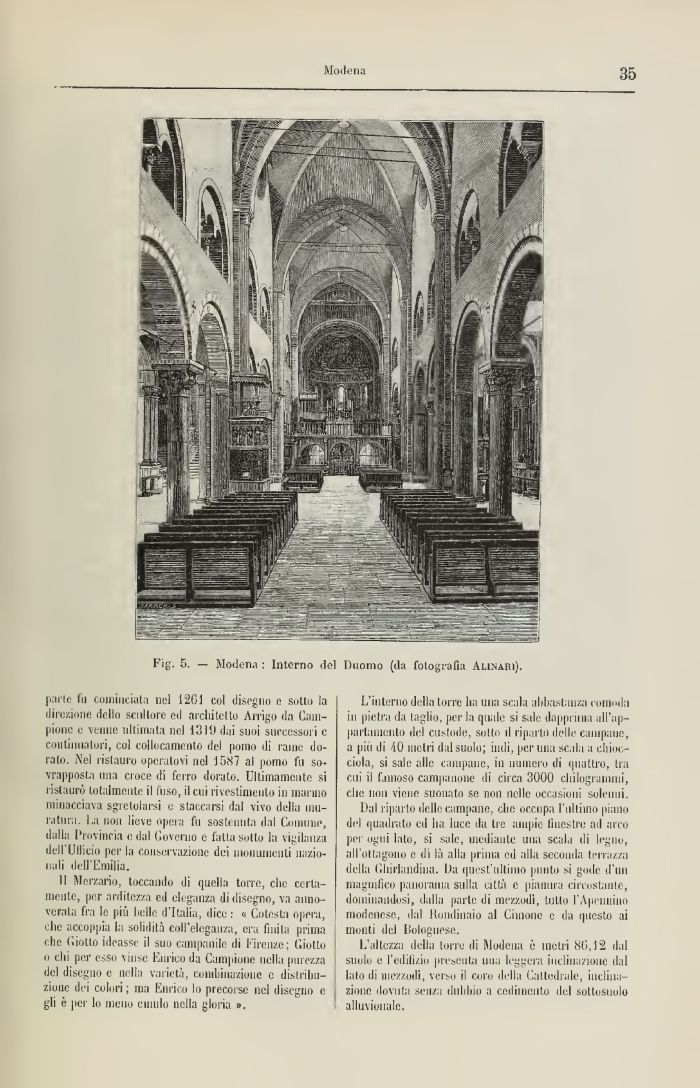 L'altezza della torre di Modena è metri 8l!,12 dal suolo e l'edilizio presenta ima leggera inclinazione dal lato di mezzodì, verso il coro della Cattedrale, inclinazione dovuta senza dubbio a cedimento del sottosuolo alluvionale.