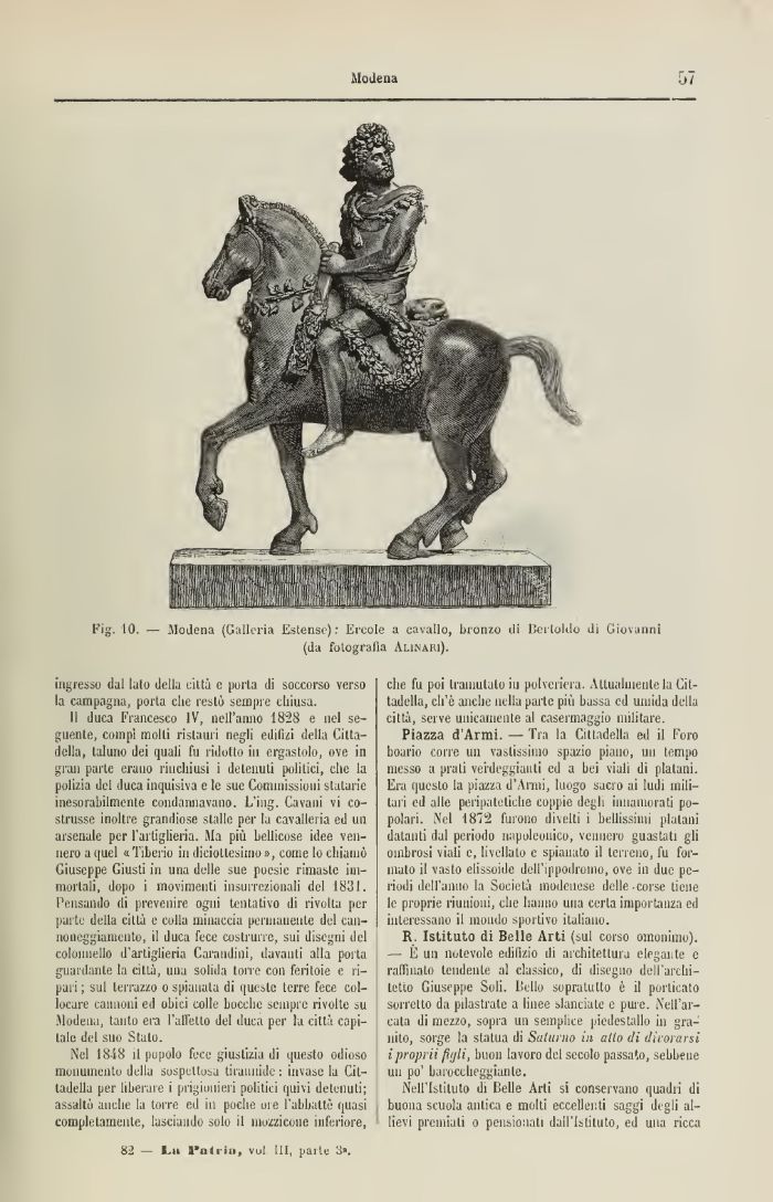 Fig. 10. — Modena (Galleria Estense): Ercole a cavallo, bronzo ili DerloUlo di Giovanni