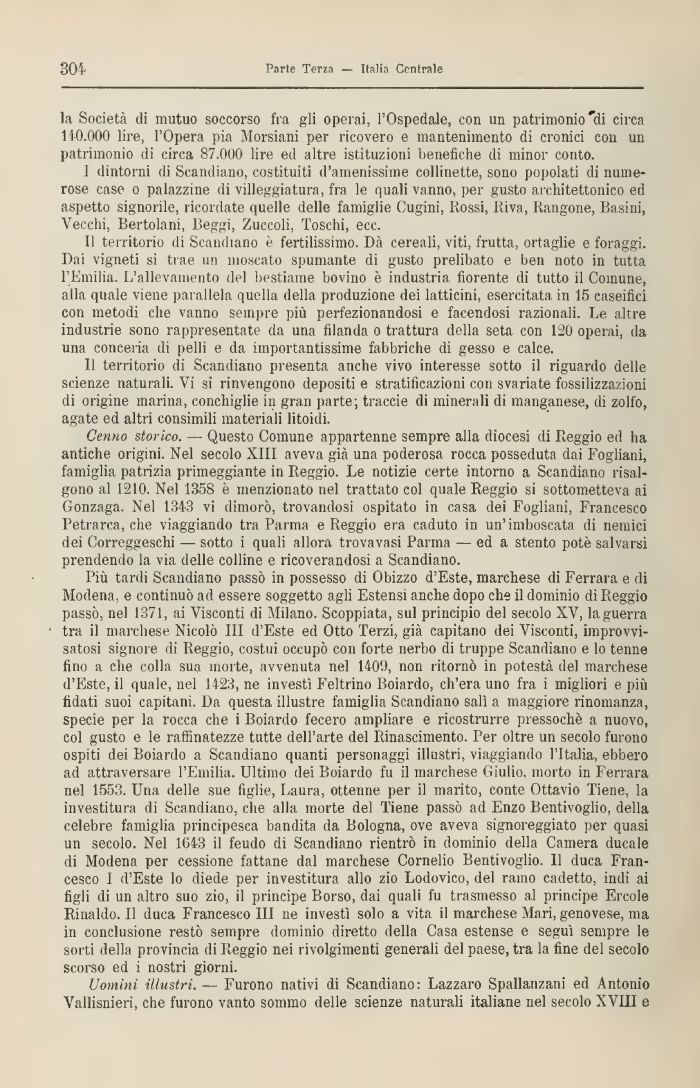 Uomini illustri. — Furono nativi di Scandiano: Lazzaro Spallanzani ed Antonio Vallisnieri, che furono vanto sommo delle scienze naturali italiane nel secolo XVIII e