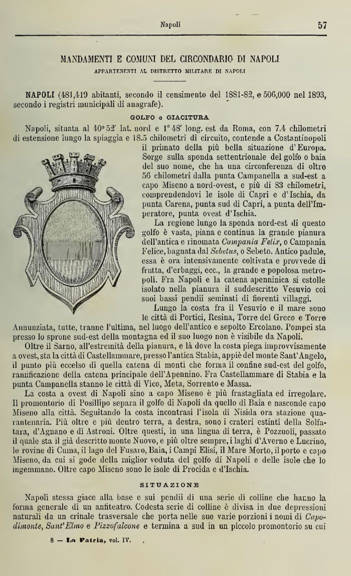 NAPOLI (481,419 abitanti, secondo il censimento del 1881-82, e 500,000 nel 1893, secondo i registri municipali di anagrafe).