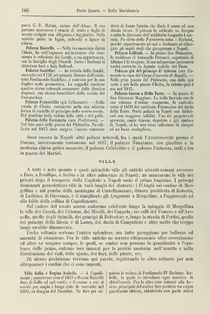 Sul cadere del secolo scorso andarono celebrate lungo la spiaggia di Mergellina le ville dei Carafa, dei Colonna, dei Mirelli, dei Coppola; sui colli del Vomero e all'Are-nella, quelle degli Spinelli, dei principi di Belvedere e, lungo la strada di Portici, quelle dei principi della Riccia e di Lauro, dei duchi di Campolieto e altre molte che troppo lungo sarebbe dinumerare.