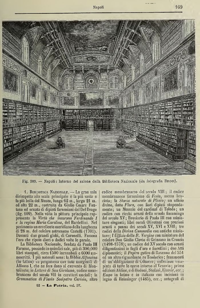 Fig. 109. Napoli ; Interno del salone della Biblioteca Nazionale (da fotografia Brogi)