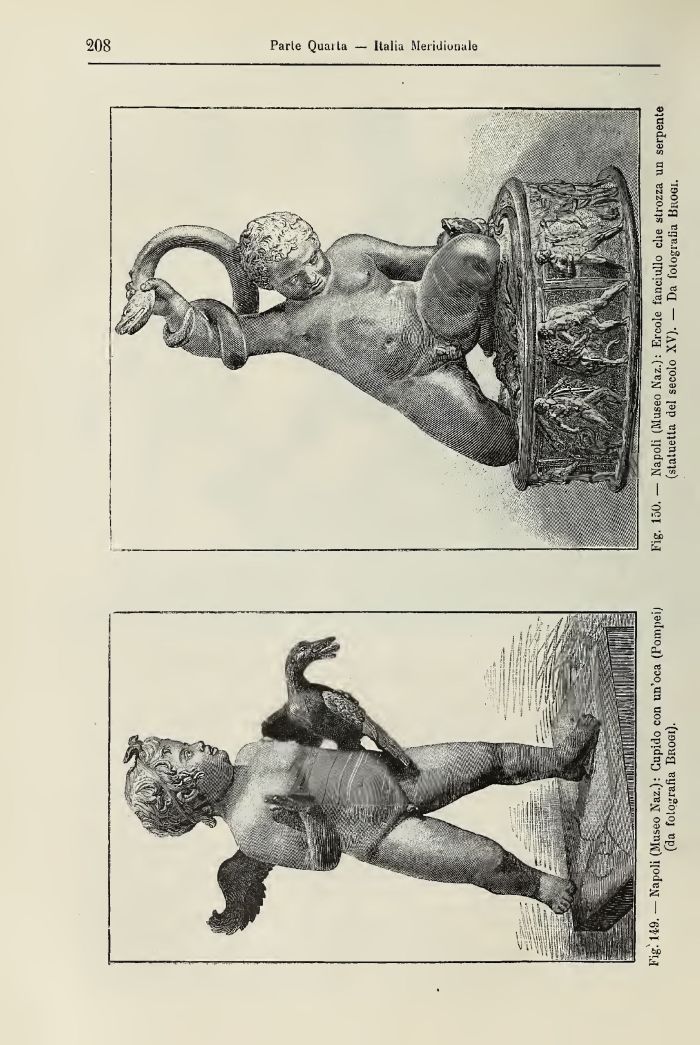 Fig. 149. — Napoli (Museo Naz,): Cupido con un'oca (Pompoij (da fotografia Brogi), Fig. 150. — Napoli (Museo Naz.): Ercole fanciullo che strozza un serpente (statuetta del secolo XV). — Da fotografa Liuoui