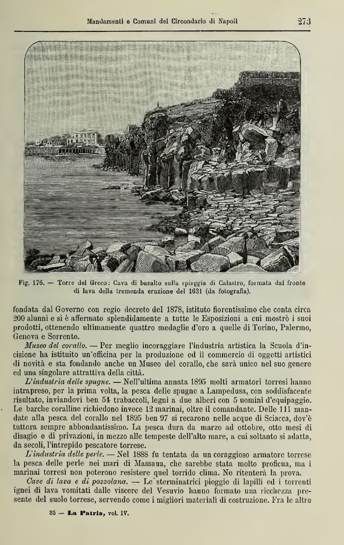 Ffgs 176. — Torre del Greco: Cava di basalto sulla spiaggia di Calastro, Connata dal fronte di lava della tremenda eruzione del 1631 (da fotografia).
