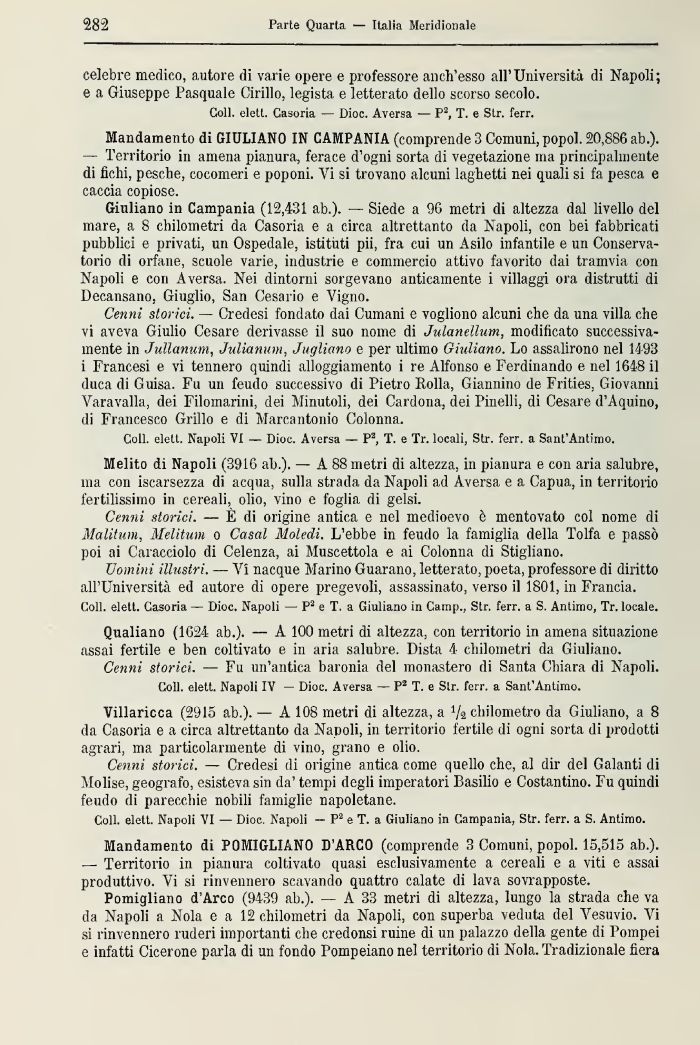 Yillaricca (2915 ab.). — A 10S metri di altezza, a Va chilometro da Giuliano, a 8 da Casoria e a circa altrettanto da Napoli, in territorio fertile di ogni sorta di prodotti agrari, ma particolarmente di vino, grano e olio.