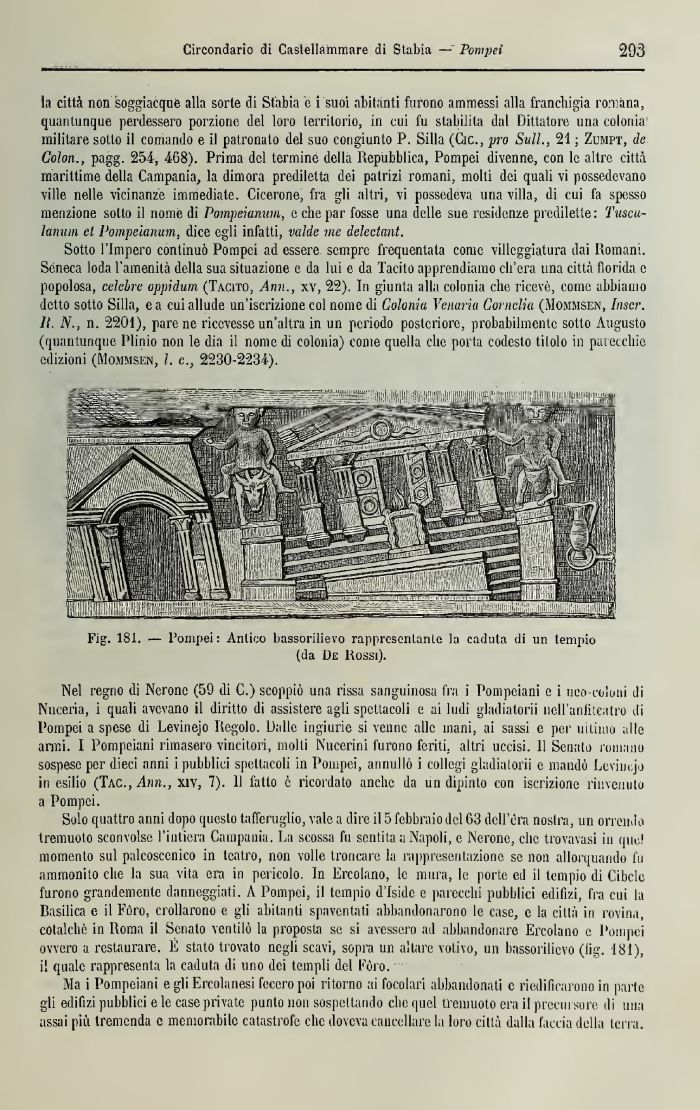 Fig. 181. — Pompei: Antico bassorilievo rappresentarne la caduta di un tempio