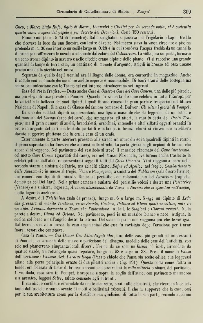 Casa del Poeta Tragico. — Detta anche Casa di Omero e Casa del Cave Cunem, una delle più piccole, ma più eleganti case private di Pompei. Quando fu scoperla divenne celebre in tutta l'Europa per la varietà e la bellezza dei suoi dipinti, i quali furono rimossi in gran parte e trasportati nel Museo Nazionale di Napoli. E la casa di Glauco del famoso romanzo di Bulwer: Gli ultimi giorni di Pompei.
