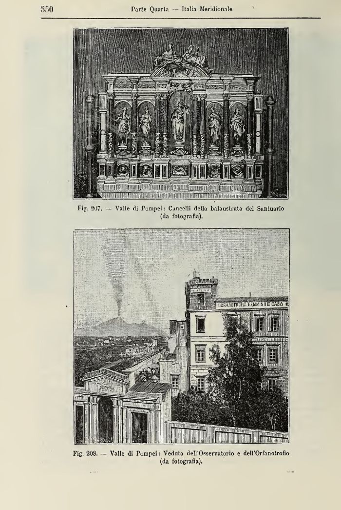 37-2 Parte Quarta — Italia Meridionale Fig. 207. — Valle di Pompei : Cancelli della balaustrata del Santuario (da fotografia). Fig. 208. — Valle di Pompei : Veduta dell'Osservatorio e dell'Orfanotrofio (da fotografia).