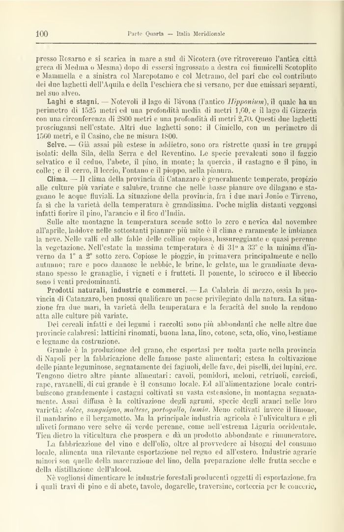 Prodotti naturali, industrie e commerci, — La Calabria di mezzo, ossia la provincia di Catanzaro, ben puossi qualificare un paese privilegiato dalla natura. La situazione fra due man, la varietà della temperatura e la feracità del suolo la rendono atta alle culture più variate.