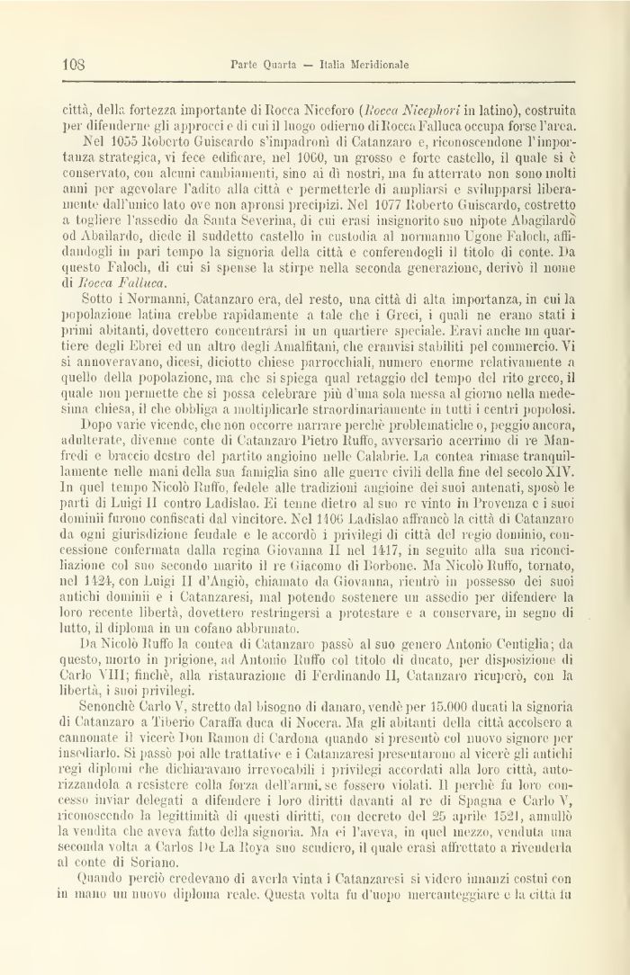 Sotto i Normanni, Catanzaro era, del resto, una città di alta importanza, in cui la popolazione latina crebbe rapidamente a tale che i Greci, i quali ne erano stati i primi abitanti, dovettero concentrarsi m un quartiere speciale. Eravi anche nn quartiere degli Ebrei ed un altro degli Amalfitani, che eranvisi stabiliti pel commercio. Vi si annoveravano, dicesi, diciotto chiese parrocchiali, ninnerò enorme relativamente a quello della popolazione, ma clic si spiega qua] retaggio del tempo del rito greco, il quale 11011 permette che si possa celebrare più d una sola messa al giorno nella medesima chiesa, il che obbliga a moltiplicarle straordinariamente in tutti i centri popolosi.